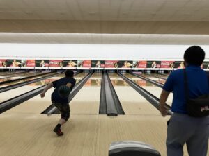 ゲーム中はみんな集中しながら全力でボウリングをプレーしていました。